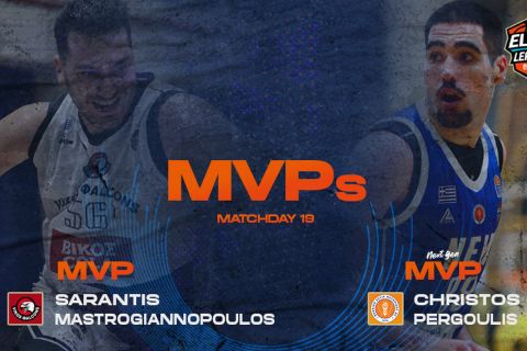 Elite League: Κορυφαίος της 19ης αγωνιστικής ο Μαστρογιαννόπουλος, MVP Next Gen ο Πέργουλης