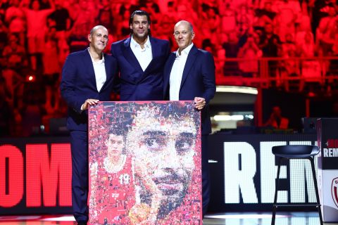 Η ξεχωριστή βραδιά της Παρασκευής 6/9, αφιερωμένη στον Γιώργο Πρίντεζη, είχε και ένα ξεχωριστό δώρο προς τον πρώην αρχηγό του Ολυμπιακό από τους Παναγιώτη και Γιώργο Αγγελόπουλο.