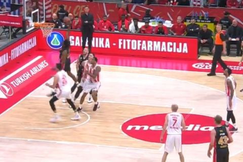 Το φοβερό κάρφωμα του Σακίλ ΜακΚίσικ μετά την σκαστή πάσα του Τόμας Γουόκαπ βρέθηκε στην δεύτερη θέση των δέκα καλύτερων φάσεων της 33ης αγωνιστικής της Ευρωλίγκας.