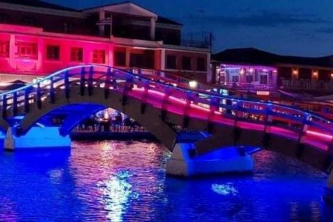 Λευκάδα - Η ξύλινη γέφυρα φωταγωγήθηκε στα χρώματα της Δόξας (pic)