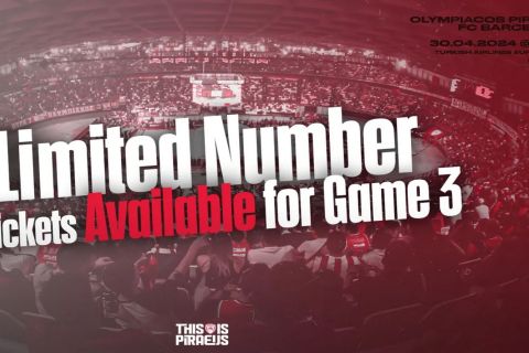 O Ολυμπιακός με σημερινή ανακοίνωσή του (29/4) ενημερώνει πως στην διάθεση του κοινού θα βρίσκονται κάποια εισιτήρια για το Game 3 με την Μπαρτσελόνα (30/04,21:30).