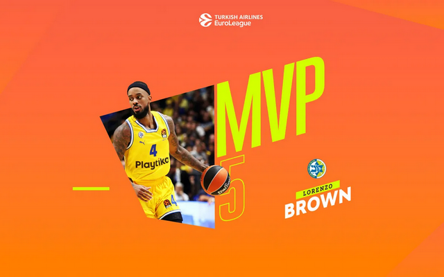 Στα χέρια του Λορέντζο Μπράουν κατέληξε το βραβείο του πολυτιμότερου παίκτη της 5ης αγωνιστικής της Euroleague.