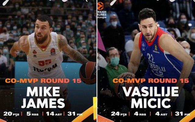 Στην… μέση μοιράστηκε το βραβείο του MVP της 15ης αγωνιστικής της Euroleague, με τους Μάικ Τζέιμς και Βασίλιε Μίσιτς, να κατακτούν το τρόπαιο του πολυτιμότερου παίκτη του διημέρου.
