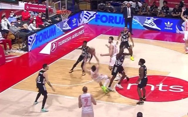 Ο Νίκολα Κάλινιτς πρόσφερε μία θεαματική φάση στην αναμέτρηση του Ερυθρού Αστέρα με τη Βιλερμπάν, καθώς ευστόχησε σε ένα δύσκολο καλάθι την ώρα που έπεφτε στο παρκέ.