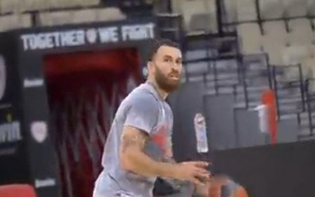 Ο Γιώργος Πρίντεζης εμψύχωσε τους συμπαίκτες του λιγο πριν βγουν στο παρκέ του ΣΕΦ για τον αγώνα με τη Μονακό.