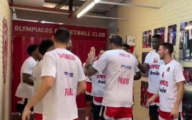 Ολυμπιακός - Μπασκόνια: Η είσοδος των ερυθρόλευκων στο παρκέ (vid)
