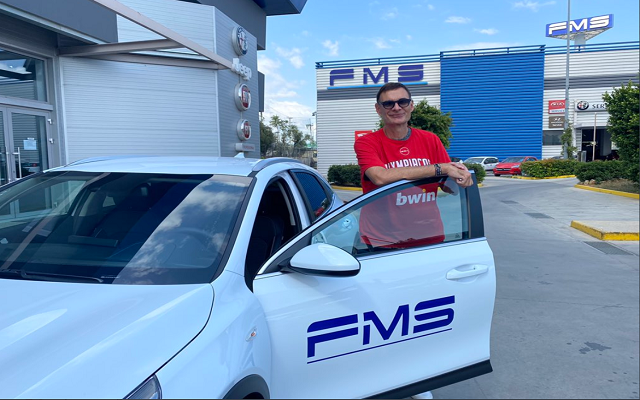 Ο προπονητής του Ολυμπιακού παρέλαβε το αυτοκινήτο από τον χορηγό της ομάδα του Πειραιά, FMS.