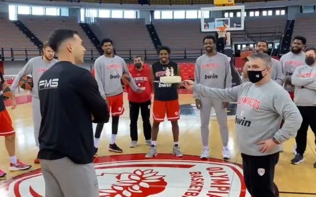 Ο Κώστας Σλούκας γιορτάζει τα 31 γενέθλιά του και οι ερυθρόλευκοι του ετοίμασαν μία έκπληξη στην προπόνηση της Παρασκευής (15/1).