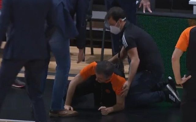 Σε μία προσπάθειά τoυ να κόψει τον αιφνιδιασμό του Ερυθρού Αστέρα, ο Ντέιβιντ Λάιτι... γκρέμισε τον διαιτητή της αναμέτρησης, Γκαρσία, ο οποίος έμεινε για αρκετά λεπτά ξαπλωμένος στο παρκέ.