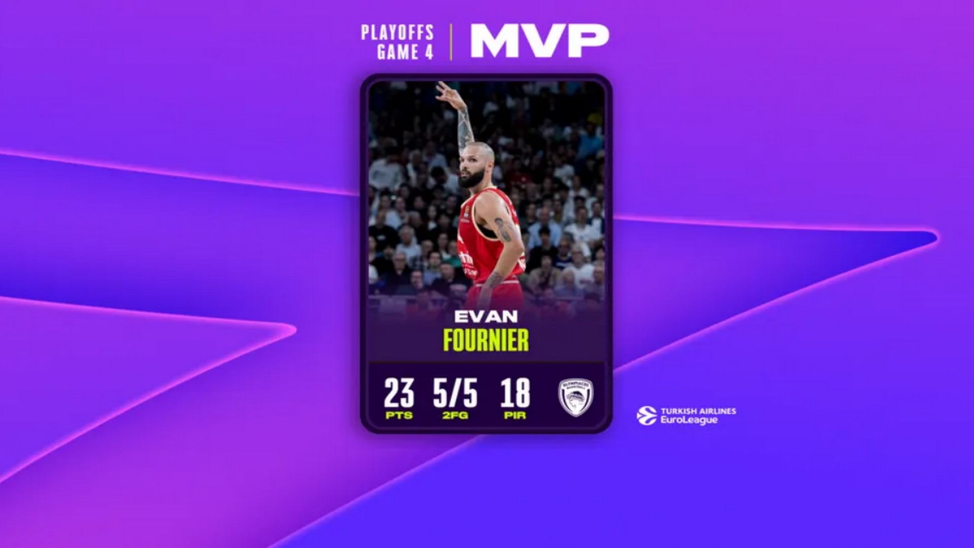 Ο Εβάν Φουρνιέ επέστρεψε… αγριεμένος, μετά τον τραυματισμό που τον άφησε εκτός από το τρίτο παιχνίδι του Ολυμπιακού με την Ρεάλ, με τον Γάλλο αστέρα να αναδεικνύεται πολυτιμότερος παίκτης των τέταρτων αγώνων των Play Offs.