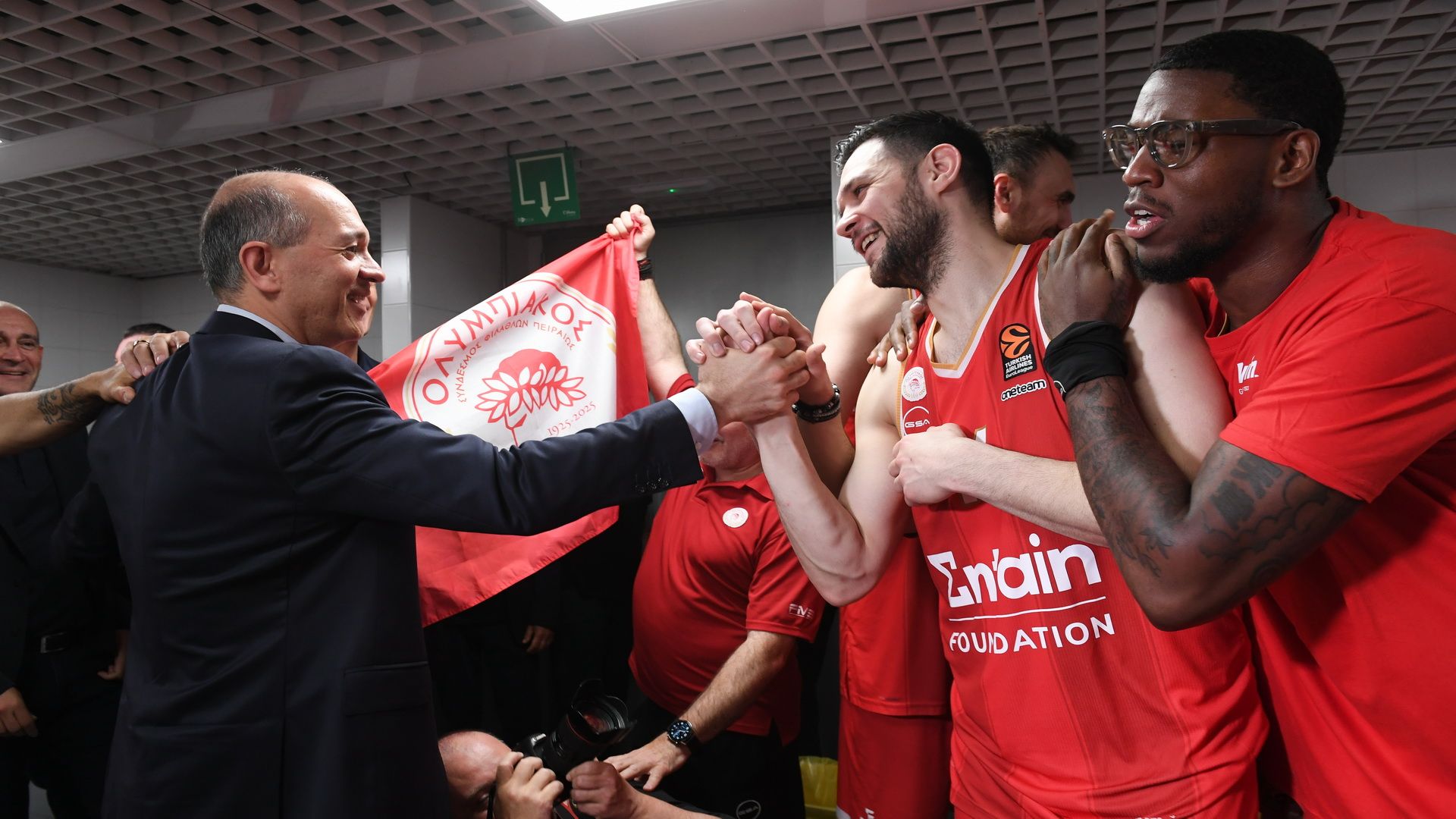 Ολυμπιακός: Οι πανηγυρισμοί μετά το «break» πρόκρισης και η χειραψία Παπανικολάου – Αγγελόπουλου (vid)