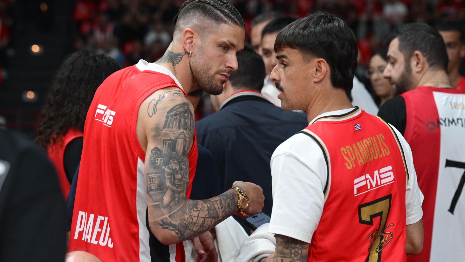 Ο Ολυμπιακός αντιμετωπίζει την Ρεάλ Μαδρίτης στο κατάμεστο Στάδιο Ειρήνης και Φιλίας, στα πλαίσια του Game 2 για τη σειρά των playoffs της Euroleague, και στο πλευρό της ομάδας βρίσκονται αθλητές του ποδοσφαρικού τμήματος οι Αλέξανδρος Πασχαλάκης και Τσικίνιο.