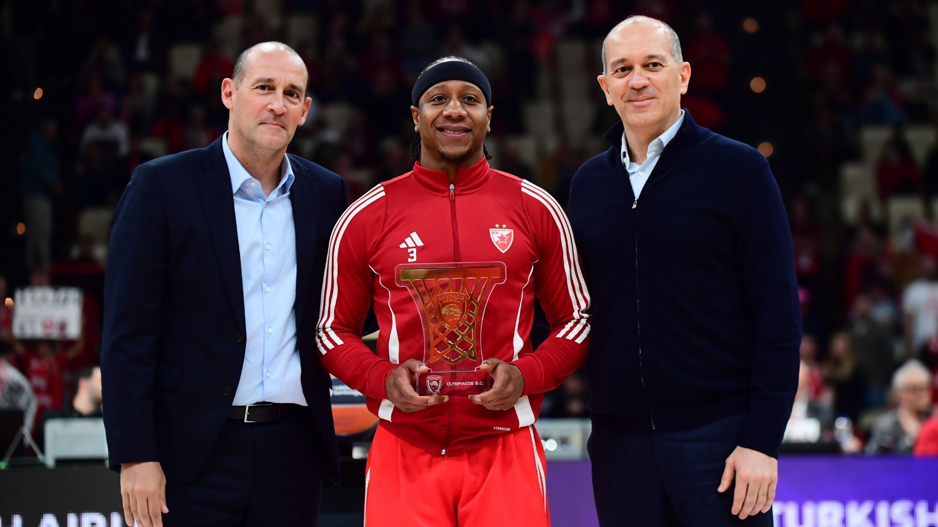 Πριν την έναρξη του μεγάλου αγώνα μεταξύ Ολυμπιακού και Ερυθρο΄υ Αστέρα, στα πλαίσια της 30ης αγωνιστικής της regular season της Euroleague, οι ισχυροί άνδρες της ΚΑΕ Ολυμπιακός βράβευσαν τον πρώην «ερυθρόλευκο» Πειραιώς και νυν «ερυθρ΄όλευκο» Βελιγραδίου, Αϊζάια Κάνααν.