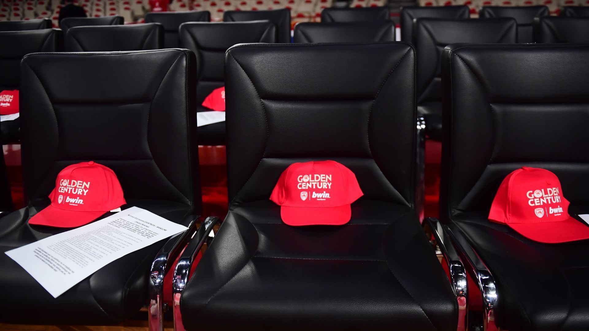 Η ΚΑΕ Ολυμπιακός τοποθέτησε σε κάθε θέση του Σταδίου Ειρήνης και Φιλίας επετειακά καπέλα, ως ένα ακόμη σύμβολο εορτασμού των 100 χρόνων της ιστορίας του συλλόγου.
