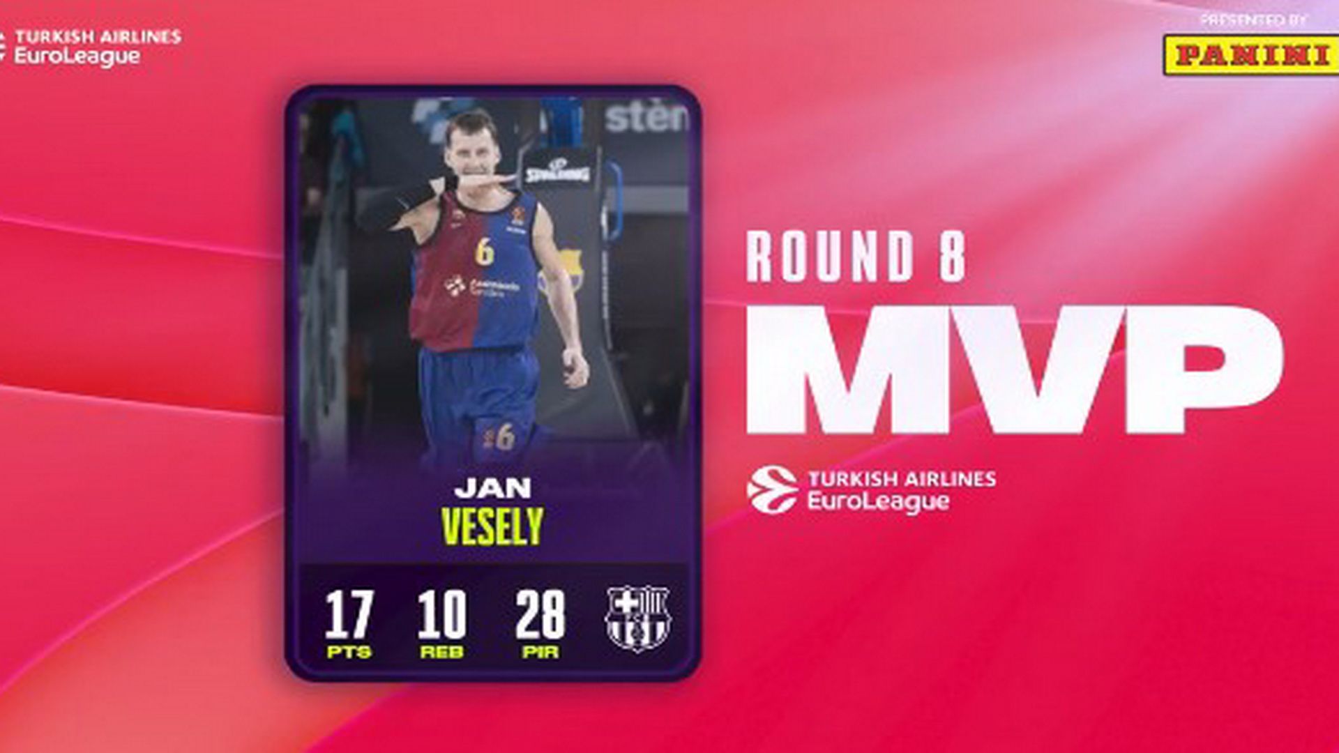 Στα χέρια του Γιαν Βέσελι κατέληξε το βραβείο του πολυτιμότερου παίκτη της 8ης αγωνιστικής της Euroleague.