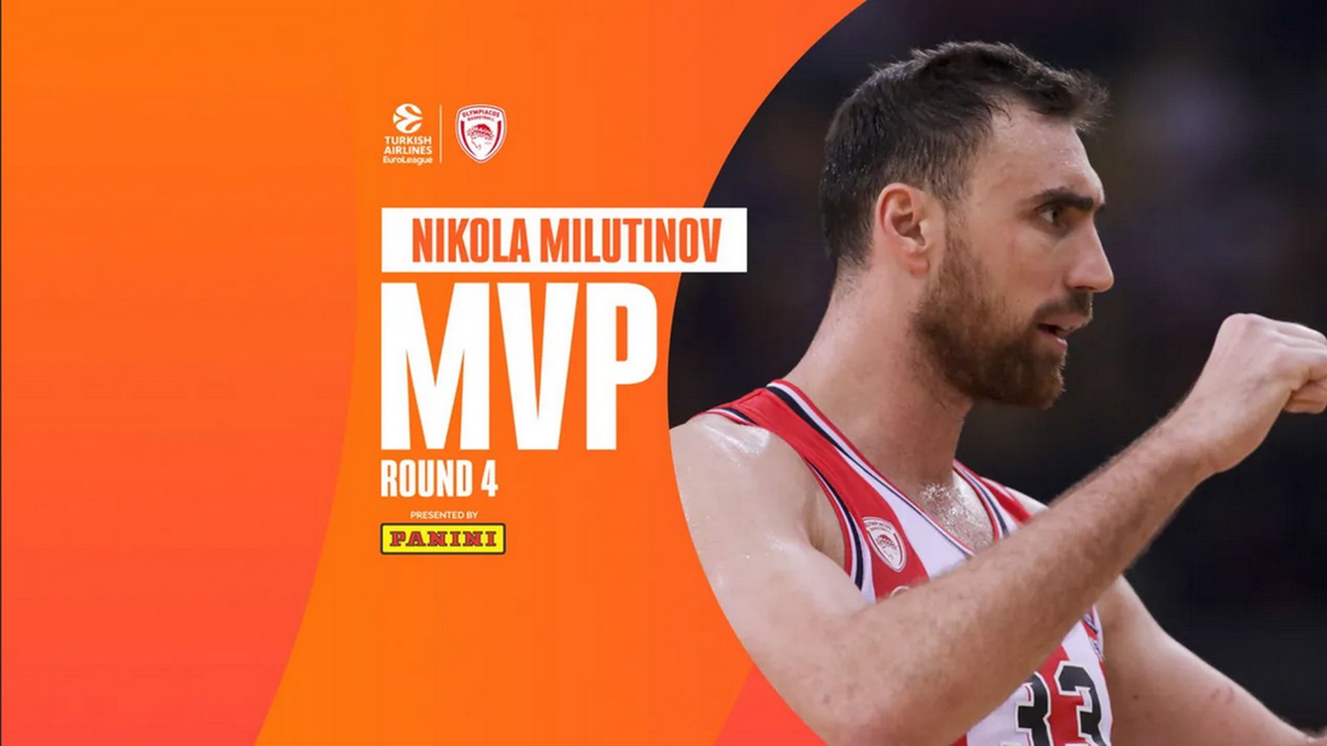 Ο Νίκολα Μιλουτίνοβ ήταν ο μεγάλος πρωταγωνιστής της σπουδαίας νίκης του Ολυμπιακού επί της Παρτιζάν, με τον Σέρβο σέντερ να αναδεικνύεται, παράλληλα, MVP της 4ης αγωνιστικής της Euroleague.