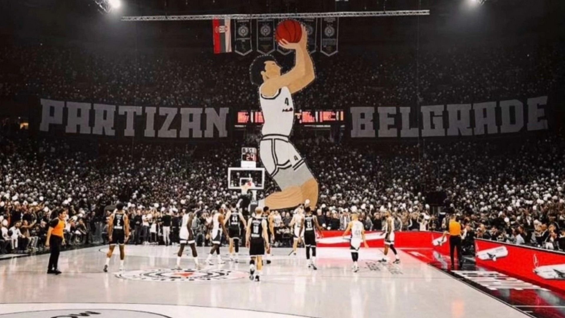 Οι οπαδοί της Παρτιζάν σήκωσαν ένα απίθανο κορεό πριν από το τζάμπολ του αγώνα με τη Φενέρμπαχτσε που απεικόνιζε το μεγάλο τρίποντο του Σάσα Τζόρτζεβιτς στον τελικό με την Μπανταλόνα.