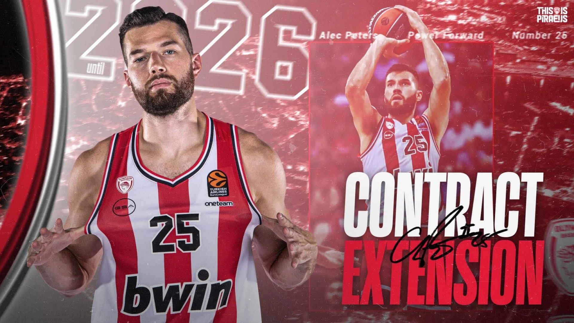 Για άλλα 2 χρόνια θα παραμείνει στον Ολυμπιακό ο Άλεκ Πίτερς, με τους ερυθρόλευκους να ανακοινώνουν την ανανέωση της συνεργασίας τους με τον Αμερικανό φόργουορντ.