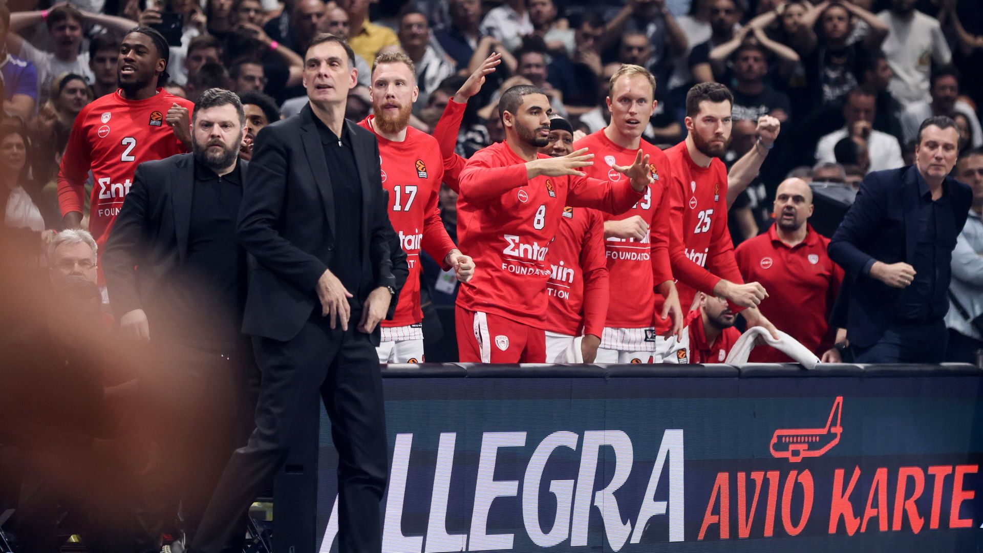 Πρώτα από όλα θα ήθελα να πω πως η ατμόσφαιρα εδώ είναι πραγματικά εντυπωσιακή. Πέρυσι είχα covid και δεν είχα έρθει στο μεταξύ μας παιχνίδι με την Παρτιζάν. Τώρα είχα την ευκαιρία να καταλάβω βλέποντάς το από κοντά, πόσο πουσάρουν την ομάδα τους οι φίλαθλοι. Λόγω αυτού θεωρώ πως ήμασταν νευρική στα τρία πρώτα δεκάλεπτα. Χάσαμε πολλά ανοικτά σουτ, είχαμε ευκαιρίες να τελειώσουμε στο transition τέσσερις εναντίον ενός, τρεις εναντίον ενός, αλλά κάναμε λάθη. Ήμασταν πίσω στο σκορ για περισσότερο από τριάντα λεπτά. Στο τελευταίο δεκάλεπτο κυριαρχήσαμε, το επί μέρους σκορ σε αυτό το διάστημα ήταν 28-10 και αυτό ήταν καθοριστικό. Όλα ξεκίνησαν από την καταπληκτική μας άμυνα που τρεις παίκτες οι Παπανικολάου, Γουόκαπ και Γκος έδωσαν στην ομάδα. Αμύνθηκαν και περιόρισαν τους επικίνδυνους γκαρντ της Παρτιζάν. Φυσικά ήταν μια ομαδική προσπάθεια. Πρέπει, όμως, να πω πως οι Γκος και Γουόκαπ σε αυτό το χρονικό διάστημα δεν μπορούν να κάνουν προπόνηση γιατί αντιμετωπίζουν πρόβλημα τραυματισμού. Το ότι έδωσαν για είκοσι λεπτά αυτή την ένταση ήταν καθοριστικό. Συγχαρητήρια στην ομάδα μου. Μπροστά μας έχουμε ακόμα δύο παιχνίδια για να ολοκληρωθεί η κανονική διάρκεια της σεζόν και να μπούμε στα πλέι οφ με το καλύτερο δυνατό πλασάρισμα. Καλή τύχη στον Ζέλικο και την Παρτιζάν», ήταν το αρχικό σχόλιο του προπονητή του Ολυμπιακού, που στην συνέχεια αναφέρθηκε στους Νίκολα Μιλουτίνοβ και Φιλίπ Πετρούσεβ, λέγοντας χαρακτηριστικά: