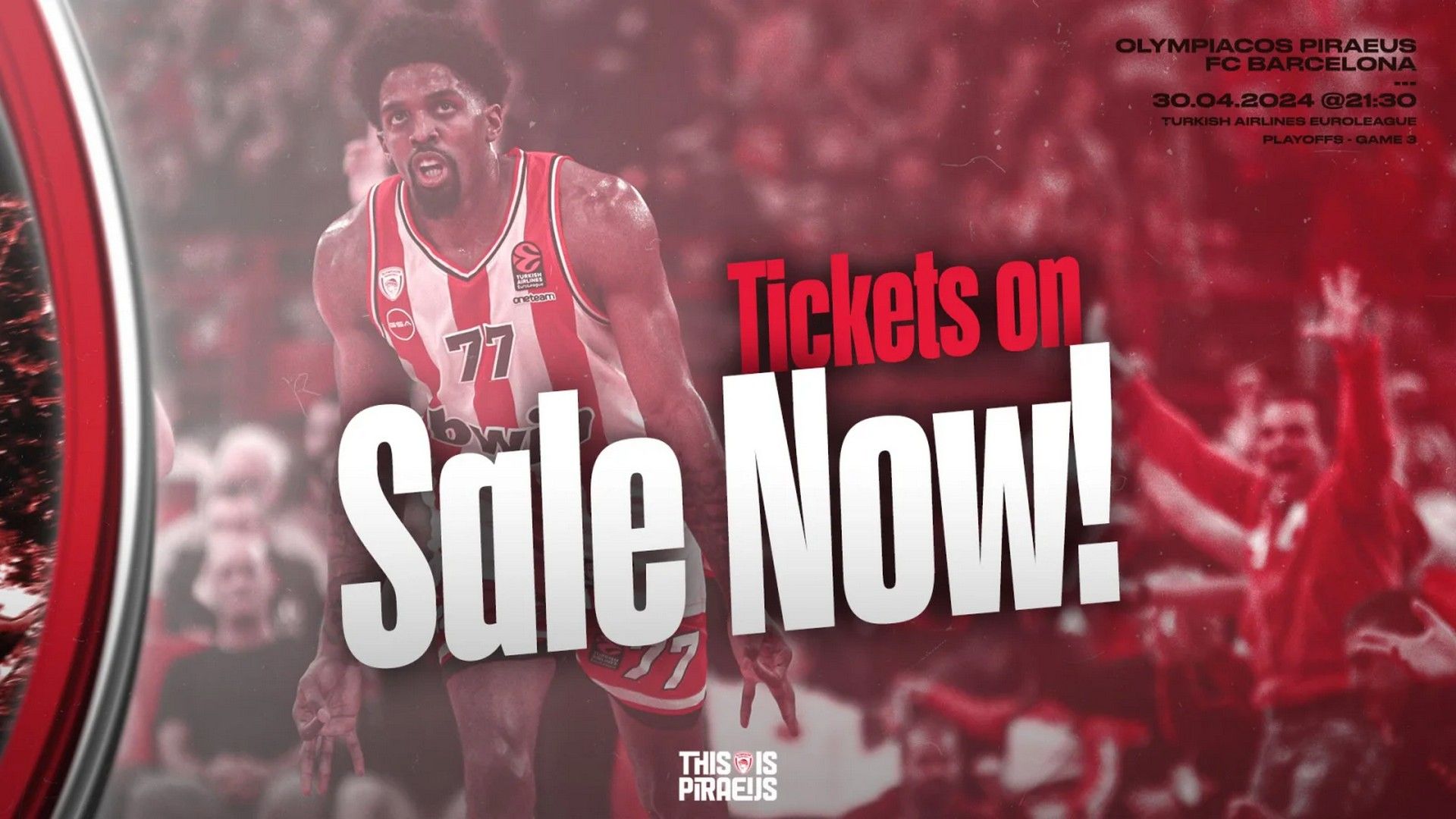 Την Τετάρτη 24/4 τίθενται στη διάθεση του κοινού τα εισιτήρια για το Game 3 των playoffs της Euroleague μεταξύ του Ολυμπιακού και της Μπαρτσελόνα που θα γίνει στο ΣΕΦ, με τους ερυθρόλευκους να προσβλέπουν για άλλη μια φορά στη στήριξη του κόσμου.
