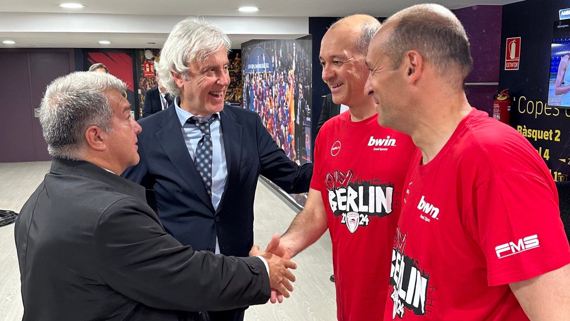 Λίγα λεπτά μετά την πρόκριση του Ολυμπιακού στο Final 4 τα στελέχη της Μπαρτσελόνα έκαναν πολύ σημαντική κίνηση πολιτισμού, καθώς τόσο ο πρόεδρος, όσο και ο GM των κυανέρυθρων συνεχάρησαν τους προέδρους της ερυθρόλευκης ΚΑΕ, Γιώργο και Παναγιώτη Αγγελόπουλο.