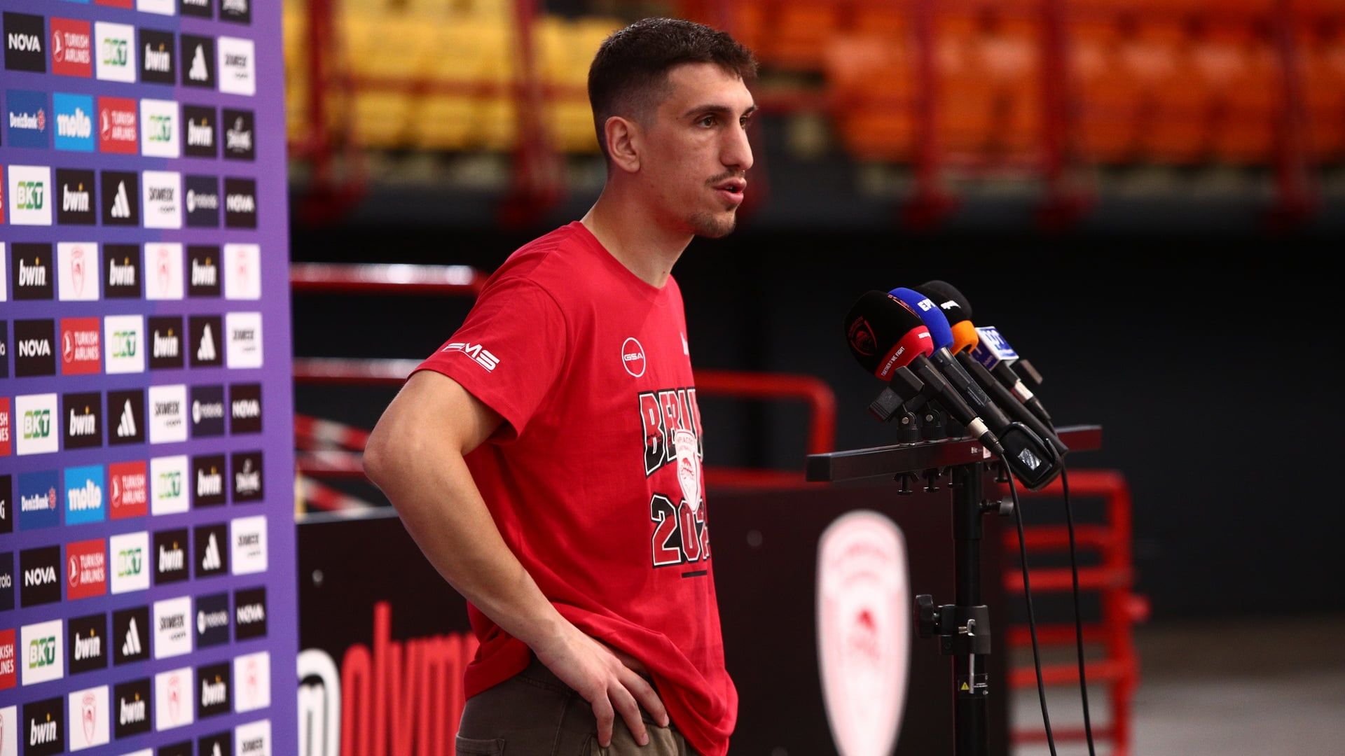 Για το γεγονός ότι το 2022 ο Ολυμπιακός ήταν πρωτοεμφανιζόμενος, πέρυσι υπήρχε το ‘πρέπει’ και φέτος είναι αουτσάιντερ και αν αυτό αλλάζει το επίπεδο της πίεσης: “Η πίεση πάντα υπάρχει. Η πίεση και το άγχος όμως πρέπει να σε κάνουν καλύτερο και να σου βγάζουν το ένστικτο της επιβίωσης. Πάμε για να διεκδικήσουμε τον τίτλο, δεν υπάρχει κάτι λιγότερο”.