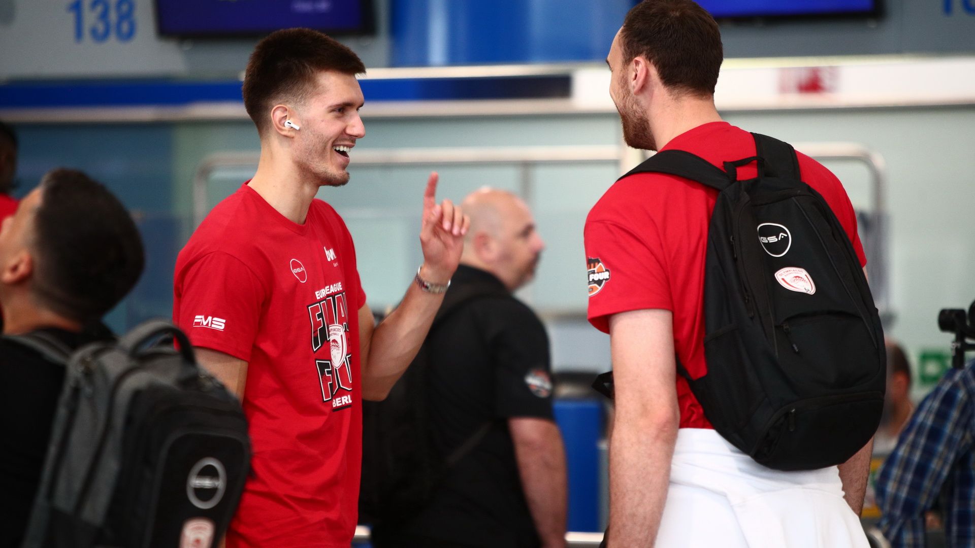 Η «ερυθρόλευκη» αποστολή αναχώρησε για την γερμανική πρωτεύουσα το μεσημέρι της Τετάρτης (22/5), με τα χαμόγελα στα πρόσωπα του Γιώργου Μπαρτζώκα και των παικτών του, να είναι χαρακτηριστικά του κλίματος που επικρατεί στο στρατόπεδο του Ολυμπιακού.