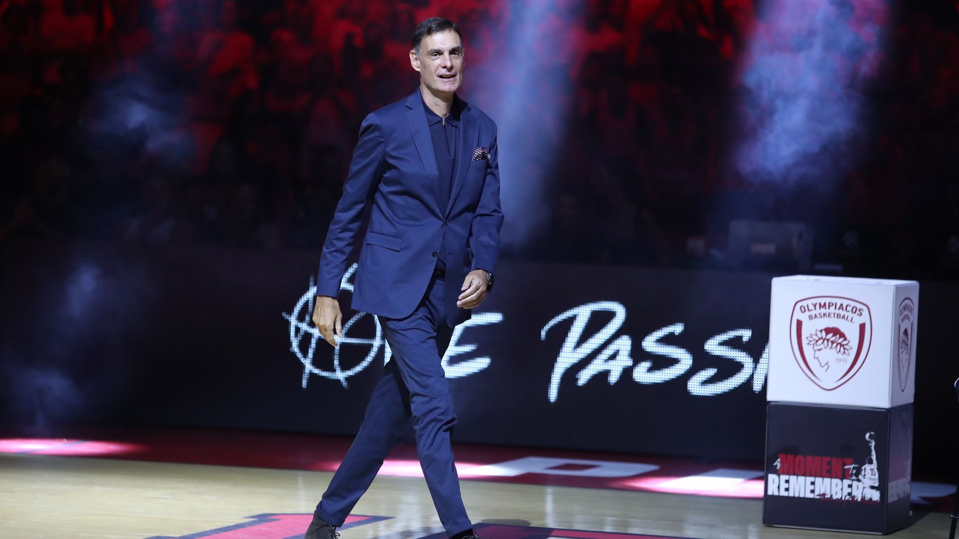 "Ευχαριστώ όσους είναι απόψε εδώ, σε αυτή τη μεγάλη ημέρα, για να τιμήσουν τον Γιώργο και τον Θρύλο. Είναι μεγάλη ημέρα για τον Θρύλο μας, που τιμάει τέτοιους αθλητές στα 100 χρόνια από την ίδρυση του Ολυμπιακού μας. Δεν έχει σημασία τι αθλητική δυνατότητα, τι δεξιότητες έχει, το πιο σημαντικό είναι ο χαρακτήρας. Για να έχεις διάρκεια 15 χρόνων, για να φοράς αυτή την τόσο δύσκολη και βαριά φανέλα του Θρύλου, σημαίνει ότι είσαι ένας ξεχωριστός άνθρωπος. Τον μεγάλο σεβασμό μου και την αγάπη μου. Το "Γιώργο ψυχάρα Ολυμπιακάρα είναι φτιαγμένο ακριβώς γι' αυτόν τον άνθρωπο".