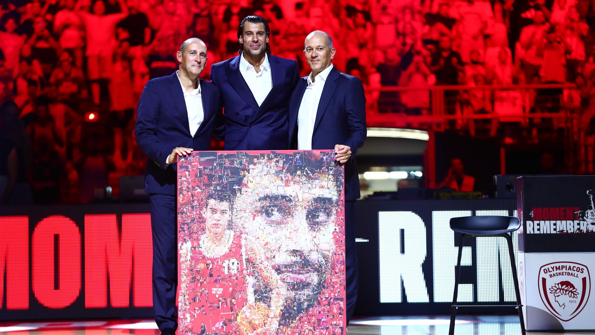 Η ξεχωριστή βραδιά της Παρασκευής 6/9, αφιερωμένη στον Γιώργο Πρίντεζη, είχε και ένα ξεχωριστό δώρο προς τον πρώην αρχηγό του Ολυμπιακό από τους Παναγιώτη και Γιώργο Αγγελόπουλο.