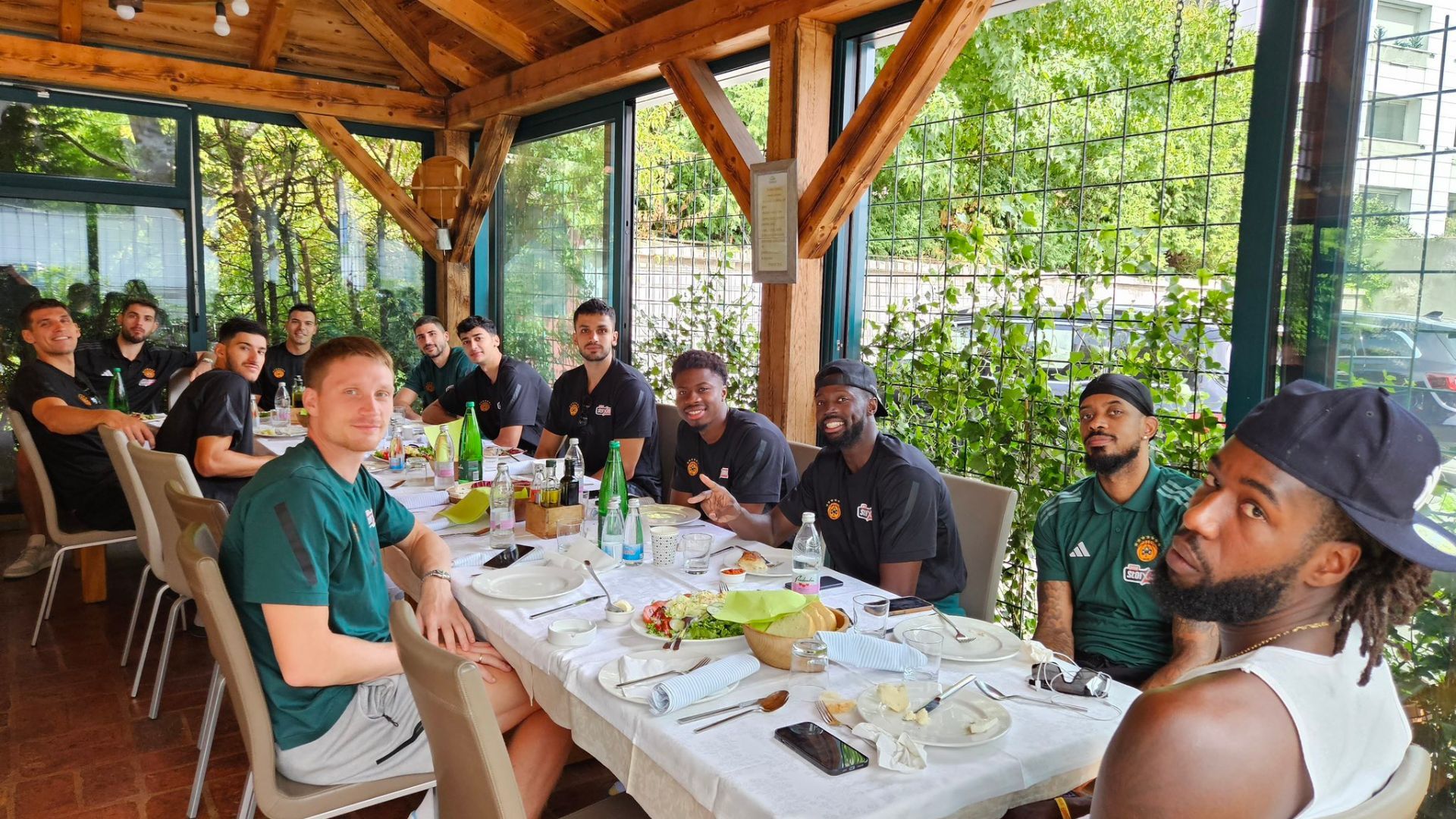 Η ΚΑΕ Παναθηναϊκός δημοσίευσε φωτογραφία με τους παίκτες της ομάδας γύρω από το τραπέζι όπου είχαν το τελευταίο τους γεύμα κατά την παρουσία τους στη Σλοβενία.