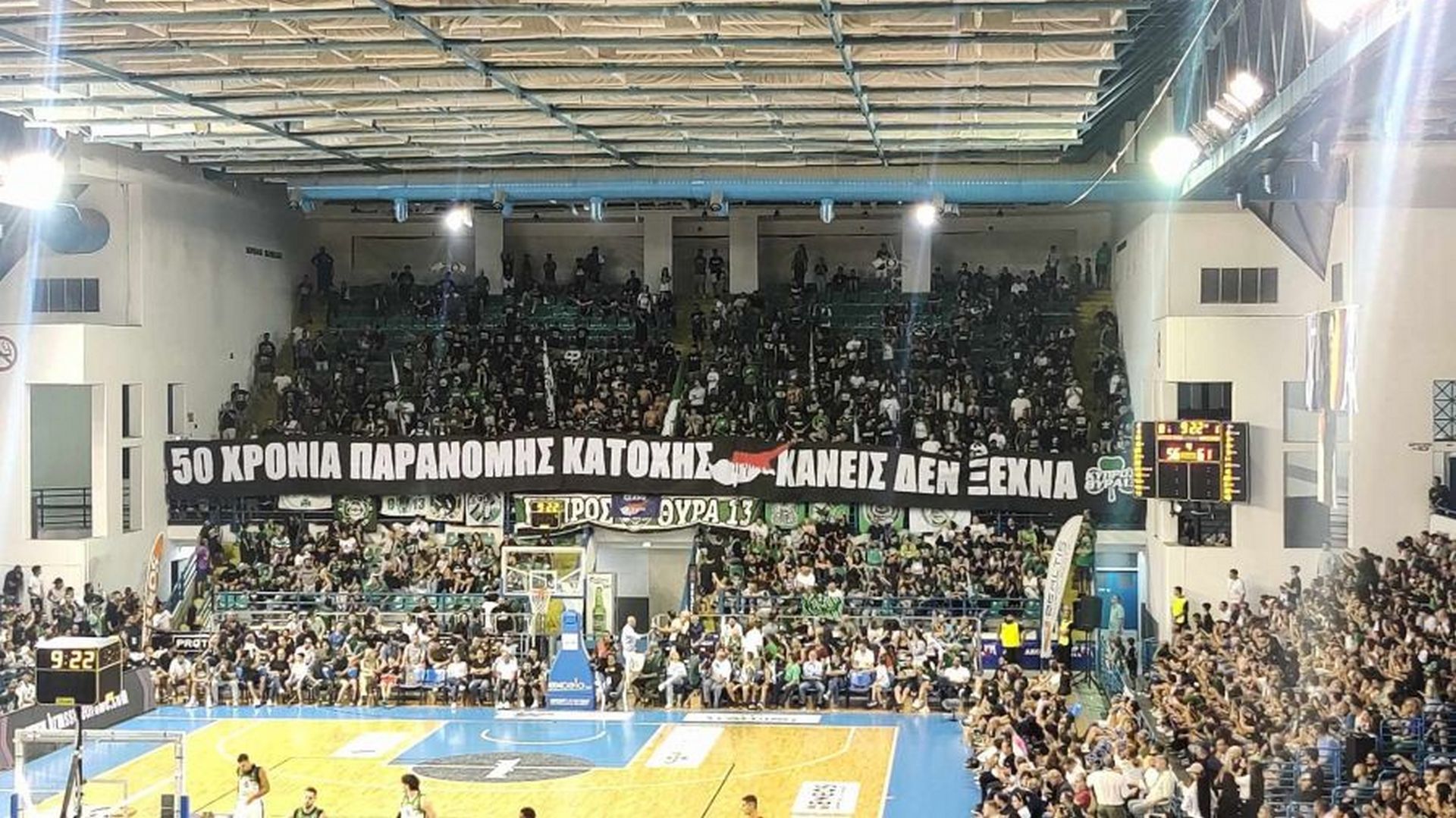«Το πανό που έγραφε «Ματωμένη εισβολή στην Κύπρο από τους Τούρκους» που άνοιξαν οι οπαδοί του Παναθηναϊκού εξόργισε τον Εργκίν Αταμάν. Μετά το συμβάν, ο Εργκίν Αταμάν μπήκε στον αγωνιστικό χώρο, έκανε νόημα στους διαιτητές λέγοντας «Βγάλε με έξω από το παιχνίδι» και αποχώρησε από την αίθουσα».