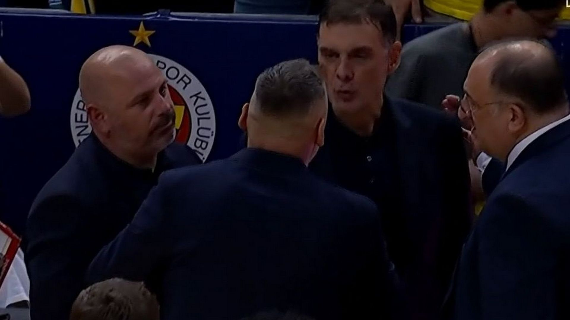 La tremenda enganchada de Saras Jasikevicius y Georgios Bartzokas tras la victoria de Fenerbahçe sobre Olympiacos.pic.twitter.com/jf7ObMSFxx