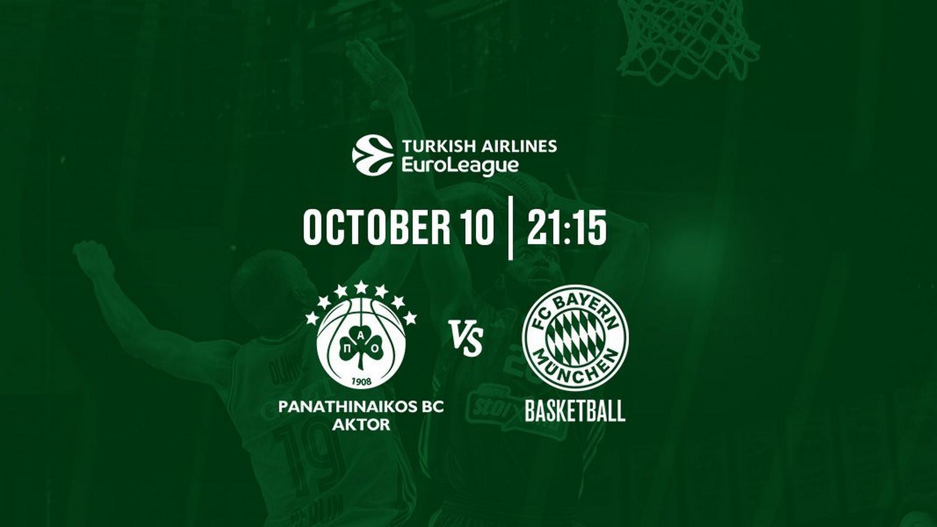 Η ΚΑΕ Παναθηναϊκός AKTOR ενημερώνει τους φιλάθλους της ότι ξεκίνησε η διάθεση των εισιτηρίων για τον πρώτο φετινό εντός έδρας αγώνα για την EuroLeague, με αντίπαλο την FC Bayern Munich (10/10, 21:15) στο εντυπωσιακό νέο ΟΑΚΑ.Η πρώτη φετινή εντός έδρας αναμέτρηση της ομάδας μας δίνει τη δυνατότητα στους φιλάθλους μας να ζήσουν μια μοναδική εμπειρία θέασης. Γι’ αυτό, μην χάνεις στιγμή και κλείσε τώρα θέση στο ΟΑΚΑ για να γίνεις κομμάτι της ιστορίας.