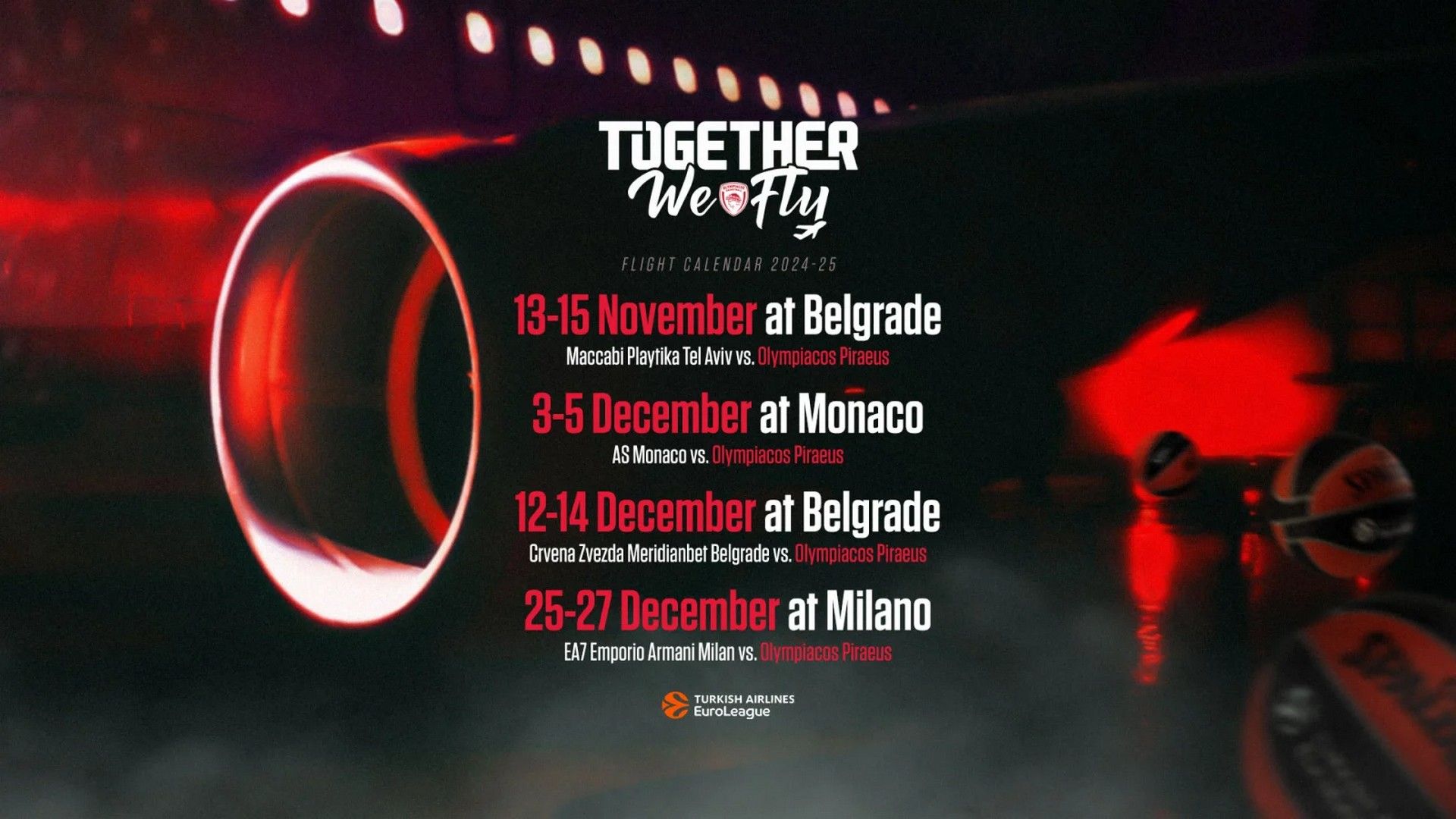 Πλούσιο σε ταξίδια είναι το πρόγραμμα του Ολυμπιακού τον Νοέμβριο, αλλά και τον Δεκέμβριο, με τους ερυθρόλευκους να καλούν τον κόσμο να μπει στο αερπλάνο μαζί με την αποστολή των Πειραιωτών.