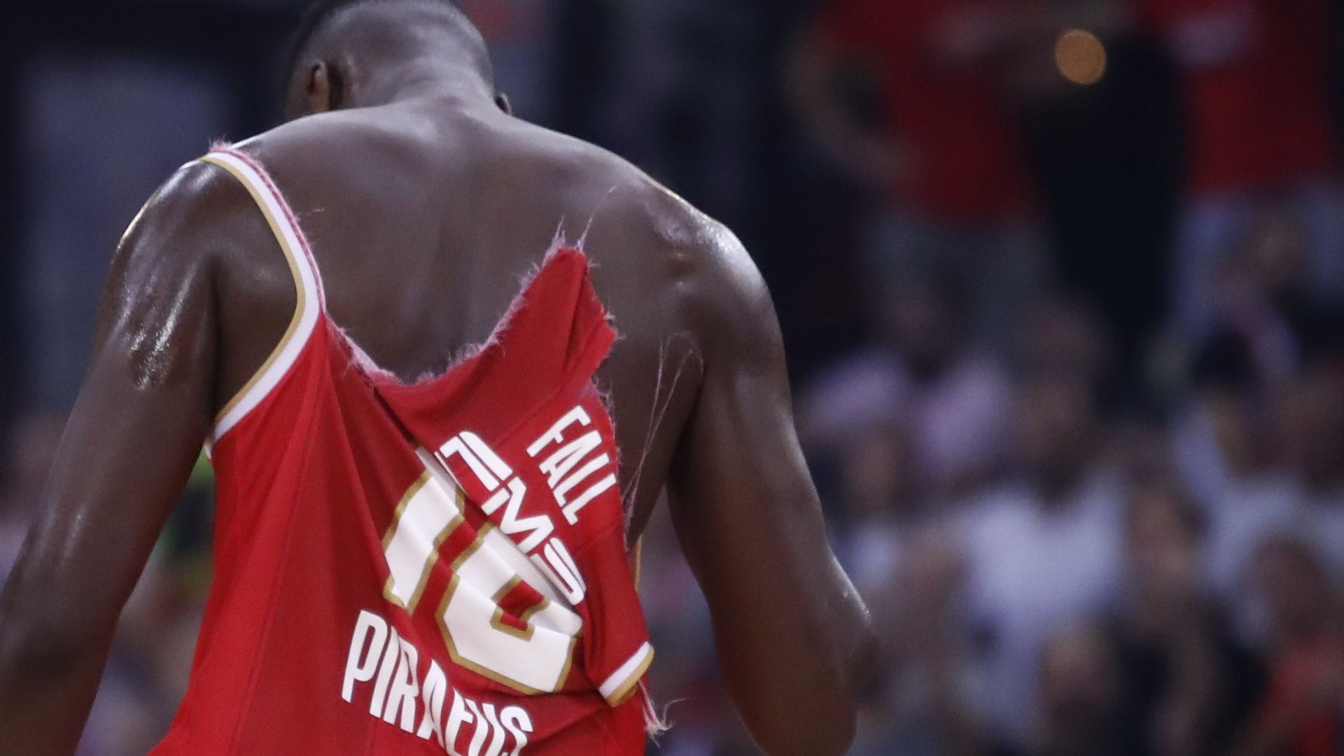 Απίστευτο περιστατικό λίγο πριν το φινάλε του αγώνα του Ολυμπιακού με την Μπαρτσελόνα, με πρωταγωνιστές τους Φαλ και Ερνανγκόμεθ και… θύμα την φανέλα του Γάλλου σέντερ.