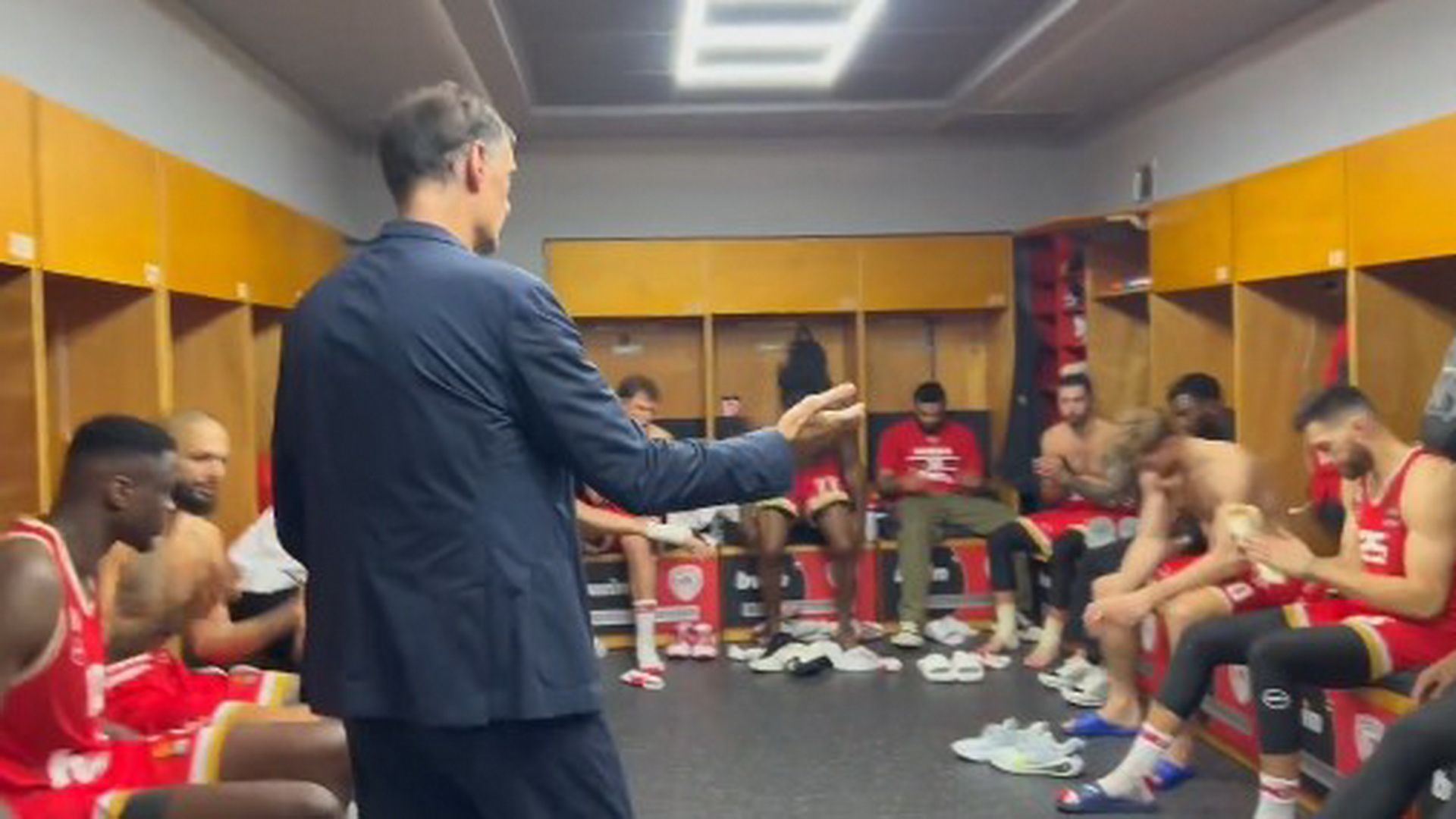 «Τώρα ξεκινάμε» ήταν τα λόγια του προπονητή του Ολυμπιακού προς τους παίκτες του.