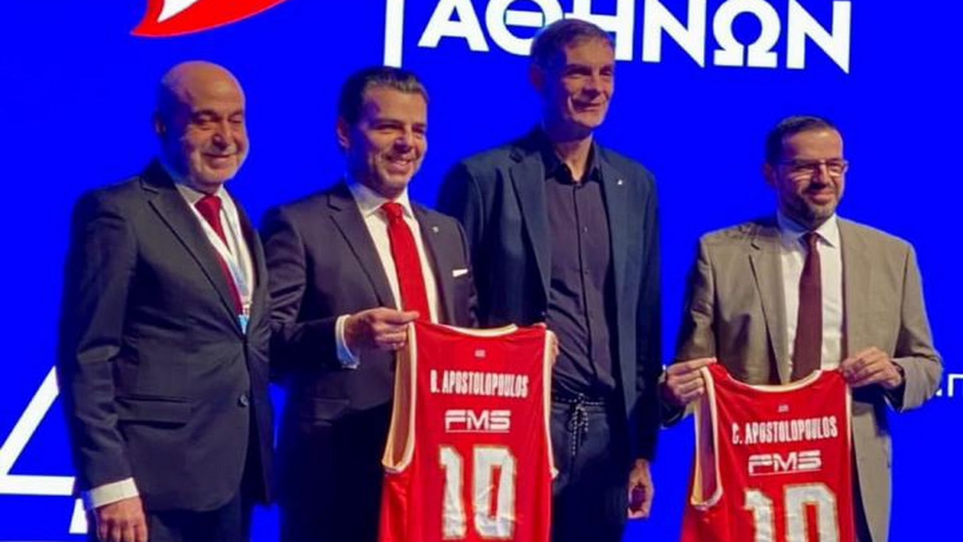 Παρόντες φυσικά στην εκδήλωση ήταν ο Διευθύνων Σύμβουλος του Ομίλου Ιατρικού Αθηνών, Δρ. Βασίλης Γ. Αποστολόπουλος και ο Εκτελεστικός Αντιπρόεδρος, κ. Χρήστος Γ. Αποστολόπουλος, οι οποίοι παρέλαβαν από τους κυρίους Τσαβίση και Μπαρτζώκα τις ερυθρόλευκες φανέλες με το Νο.10 και τα ονόματα τους.