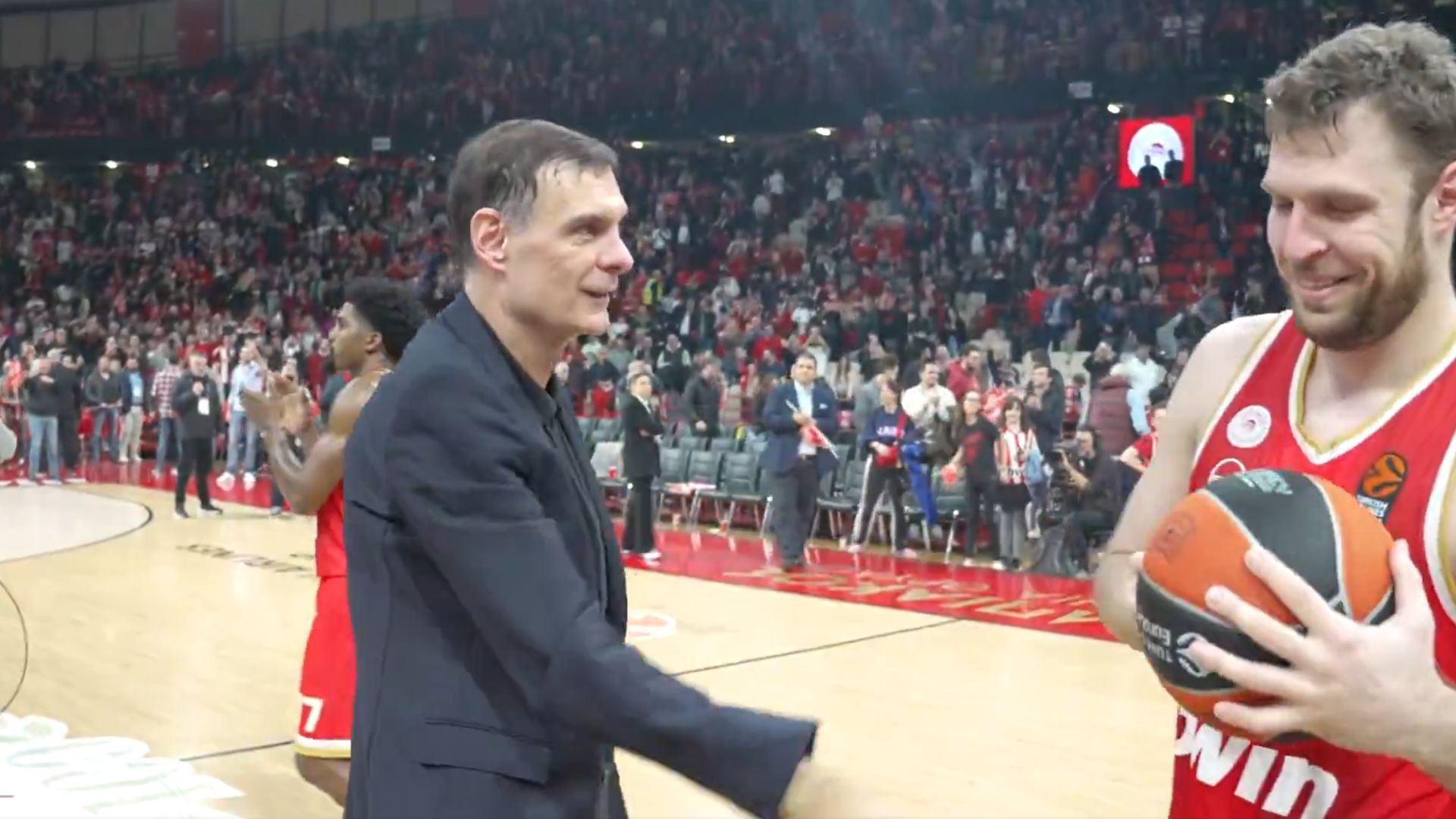 Μάλιστα, μετά το τέλος του ματς, ο προπονητής των Πειραιωτών, Γιώργος Μπαρτζ΄ωκας έψαχνε τον Βούλγαρο σταρ ώστε να του παραδώσει τιμητικά τη μπάλα στα χέρια, μετά από μια ιστορική εμφάνιση.