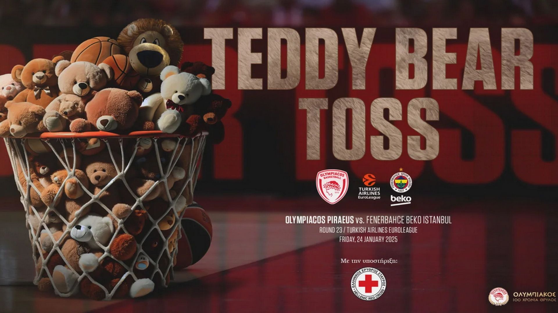 Με αφορμή την παγκόσμια ημέρα αγκαλιάς (21/1), οι «ερυθρόλευκοι» ζητούν από τους φιλάθλους τυς, να φέρουν ένα λούτρινο παιχνίδι μαζί τους και όλοι μαζί να το πετάξουν στο παρκέ του ΣΕΦ, μετά την παρουσίαση των δύο ομάδων.