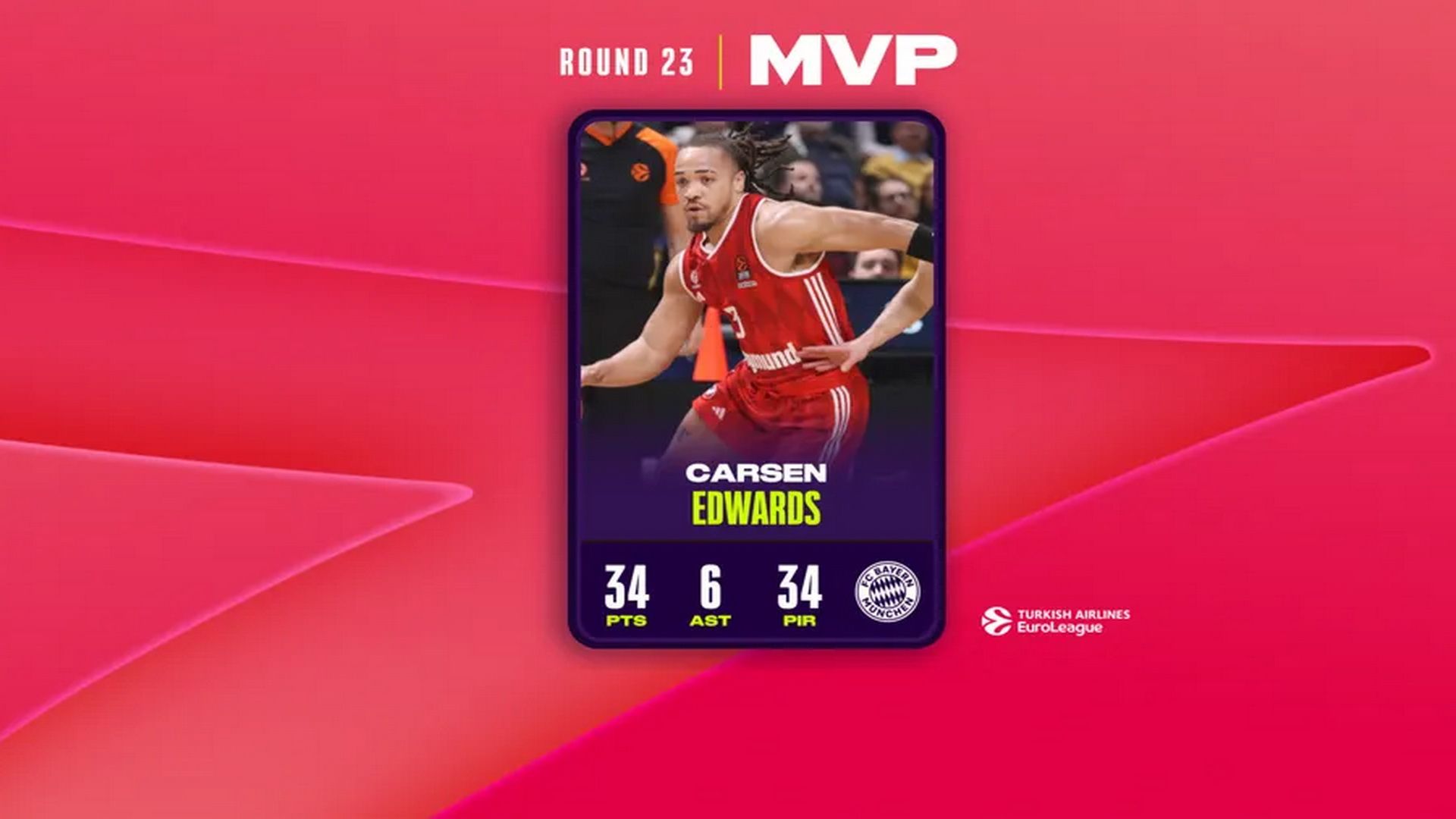 FC Bayern Munich’s Carsen Edwards secures Round 23 MVP honors with a round-high 34 PIR and a career high 34 points 🔥