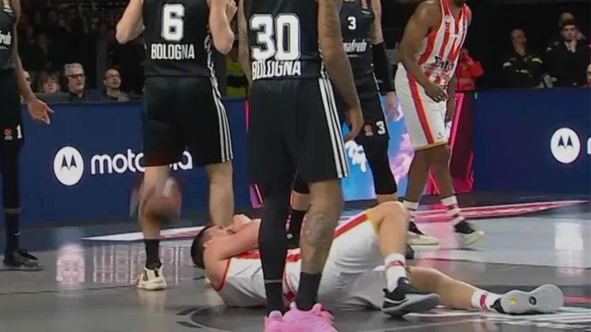 Συγκεκριμένα, ο Γιαννούλης Λαρεντζάκης, στο 13ο λεπτό της αναμέτρησης μεταξύ της Βίρτους Μπολόνια και του Ολυμπιακού στάθηκε άτυχος, καθώς είχε μια άσχημη πτώση με το πρόσωπο στο παρκέ.
