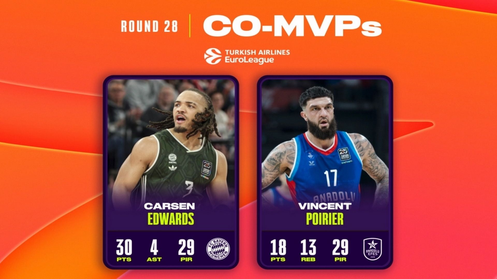 These two took over their games Round 28🤯@Cboogie_3 & @viinze_17P are the CO-MVPs of the Round! 🔥MVP of the Round I @PaniniAmerica pic.twitter.com/zqK941JewP— EuroLeague (@EuroLeague) March 8, 2025