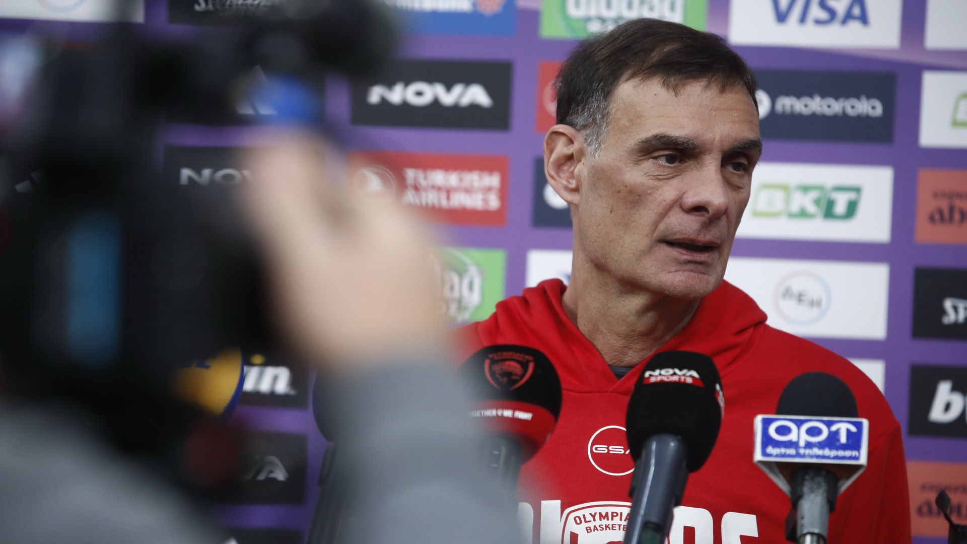 Για την επιστροφή Σπανούλη στο ΣΕΦ: «Ο Βασίλης έχει ξαναγυρίσει εδώ, σαν αντίπαλος, με το Περιστέρι και τώρα είναι σε μια πολύ δυνατή, ανταγωνιστική ομάδα στην Ευρωλίγκα και τα πηγαίνει εξαιρετικά καλά κατά τη γνώμη μου. Όλοι θα χαρούν που θα τον δουν εδώ, αλλά καταλαβαίνετε ότι η δική μου δουλειά τελειώνει εκεί, καλώς ή κακώς είναι αντίπαλός μας και πρέπει να κερδίσουμε».