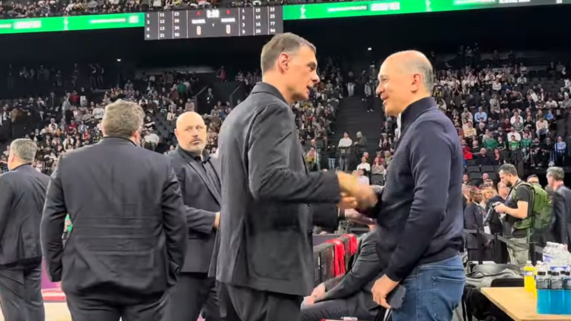 Ολυμπιακός: Συνομιλία Αγγελόπουλου-Μπαρτζώκα πριν την έναρξη του αγώνα με την Βιλερμπάν (vid)