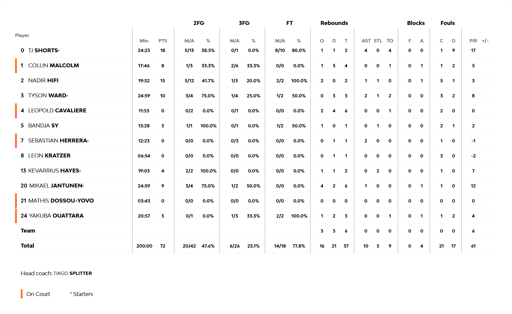Για την Παρί, ο Σορτς είχε 15 πόντους, ο Χίφι 15 και ο Γουόρντ 10 πόντους.