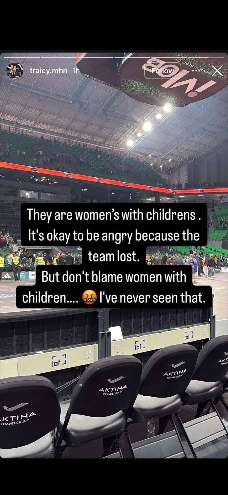 Τα όσα συνέβησαν μετά το φινάλε της αναμέτρησης του Παναθηναϊκού με την Αναντολού Εφές και η ένταση που δημιουργήθηκε ανάμεσα στους οπαδούς του Παναθηναϊκού και την - αποτελούμενη από γυναικόπαδα - αποστολή των Τούρκων, έφερε σε δύσκολη θέση μέχρι και την σύζυγο του Ματίας Λεσόρ.