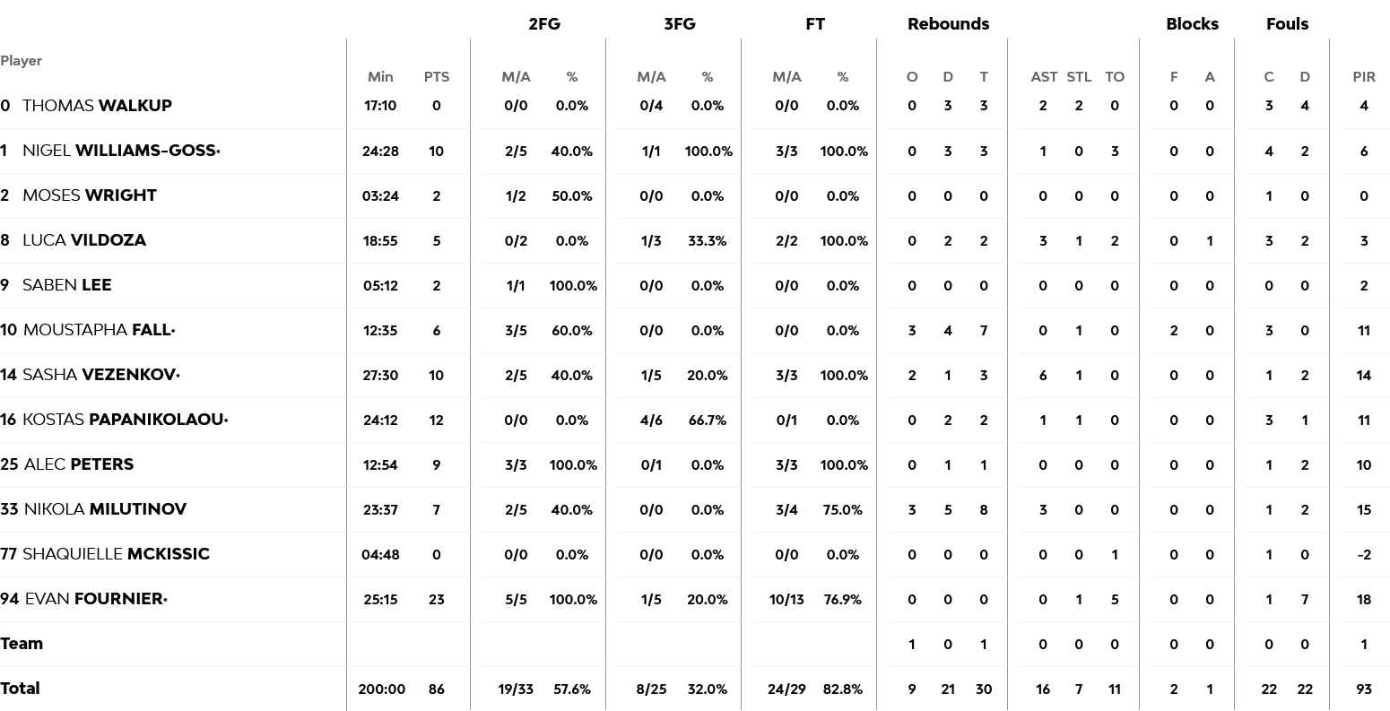 Ξεχώρισαν: Καταπληκτικός ο Κώστας Παπανικολάου, με 12 πόντους και 4/6 τρίποντα, με τους Γκος και Βεζένκοβ να έχουν από 10 πόντους έκαστος. Για την Ρεάλ, ακόμα ένα μεγάλο ματς από τον Χεζόνια, με 21 πόντους και έξι ριμπάουντ, με τον Μούσα να προσθέτει 12 και τον… αγέραστο Γιουλ 11 πόντους.