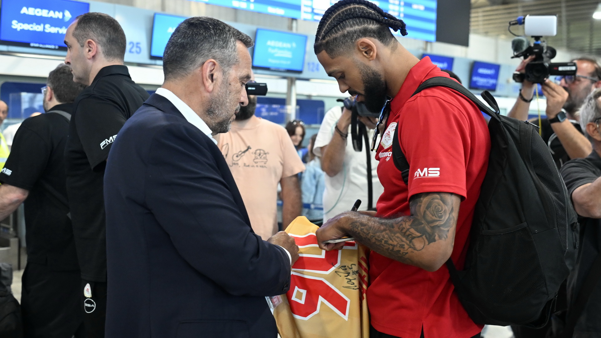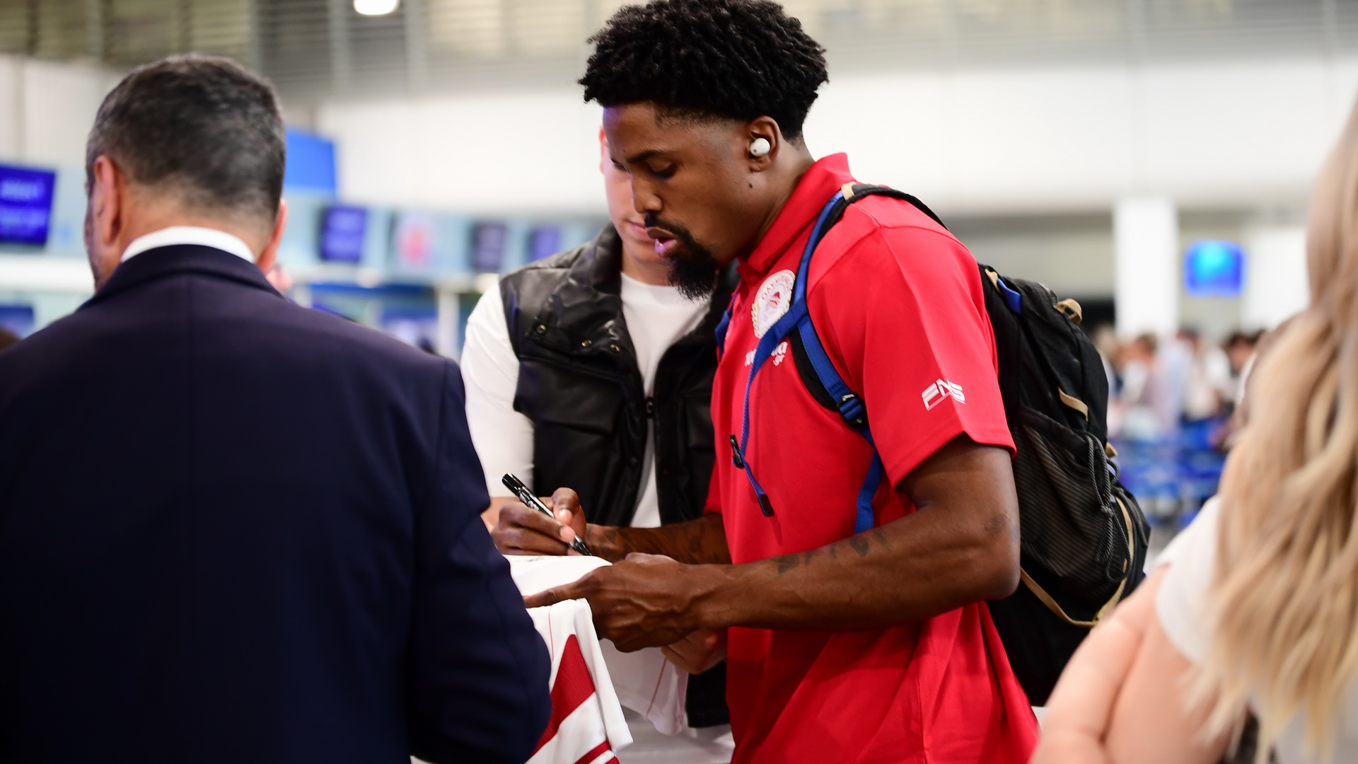 Δείτε φωτογραφίες από την αποστολή των «ερυθρόλευκων» πριν την επιβίβαση στο αεροπλάνο που θα τους μεταφέρει στην πρωτεύουσα των ΗΑΕ.