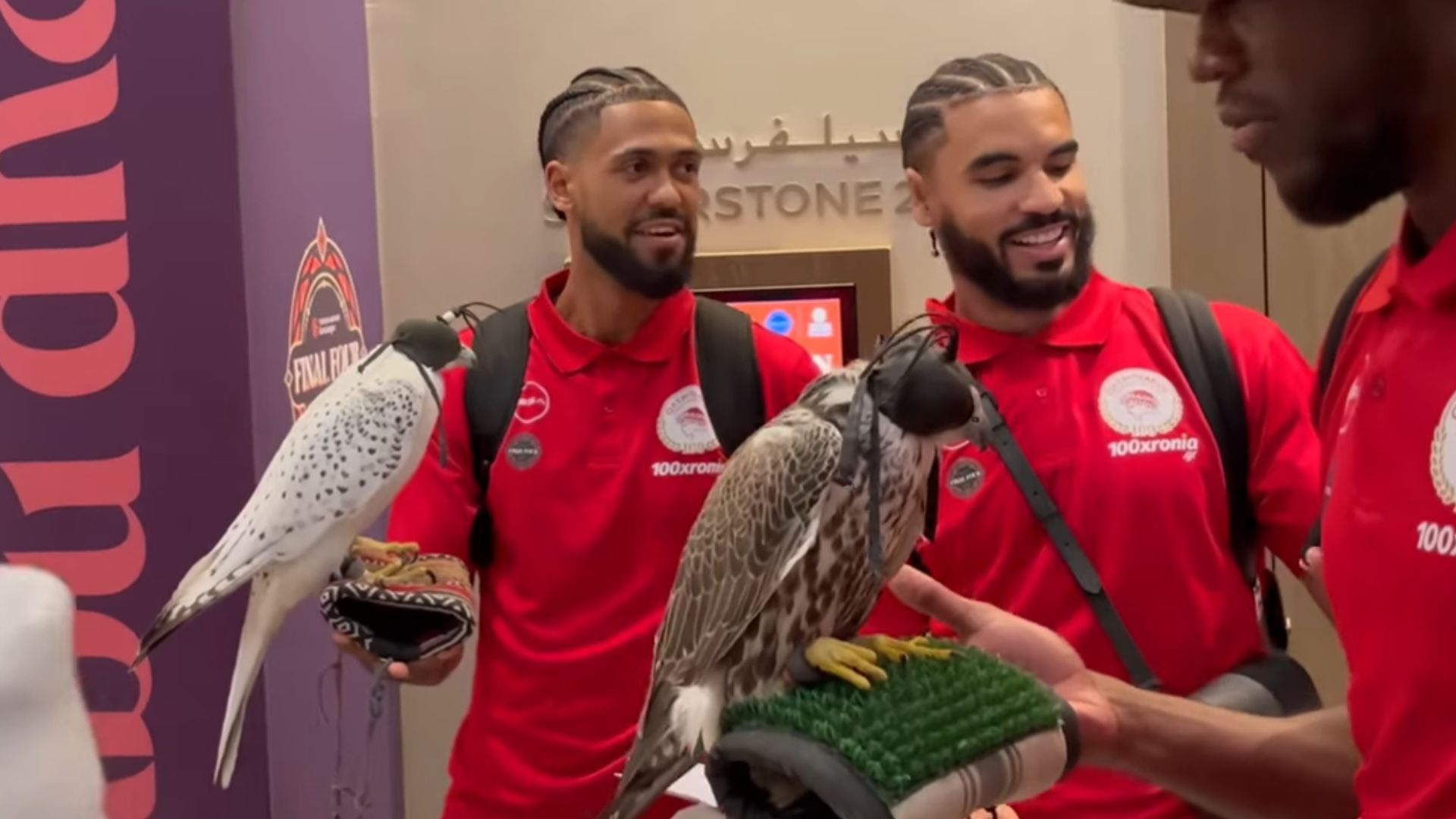 Η ομάδα του Γιώργου Μπαρτζώκα βρίσκεται στο Άμπου Ντάμπι, όπου και θα προετοιμαστεί για τον μεγάλο ημιτελικό της Παρασκευής (23/5) απέναντι στη Μονακό, όμως, όπως θα δείτε στο βίντεο της ΚΑΕ Ολυμπιακός, πρώτα υπήρξαν αρκετά χαμόγελα με τους Άραβες στο ξενοδοχείο, οι οποίοι υποδέχθηκαν την αποστολή με μουσικές και χορευτικά κατά την είσοδο, προσέφεραν ροφήματα στους παίκτες και τους έδωσαν την ικανότητα ,να κρατήσουν σε ειδικ΄η βάση πάνω στο χέρι τους, γεράκια.
