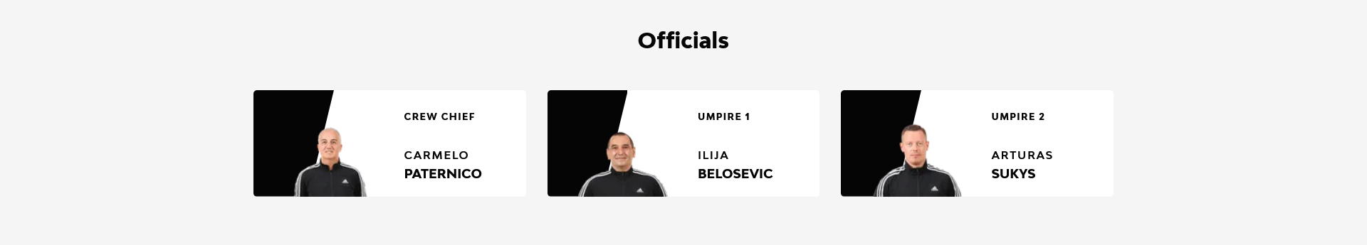 Έτσι, την διαιτητική τριάδα του αγώνα, αποτελούν οι Καρμέλο Πατέρνικο, Ίλιγια Μπελόσεβιτς και Αρτούρας Σούκις.